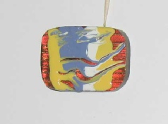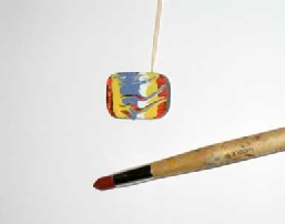 First, we will swirl the paint. Take a cab or a piece of glass and use 2 or 3 colors across the piece. Then take a brush or a toothpick and be creative. Use your artistic instinct to draw swirls, curves and lines through the wet paint. Then dry the piece and fire. This can be used on the final surface of a cab or as an intermediary step.